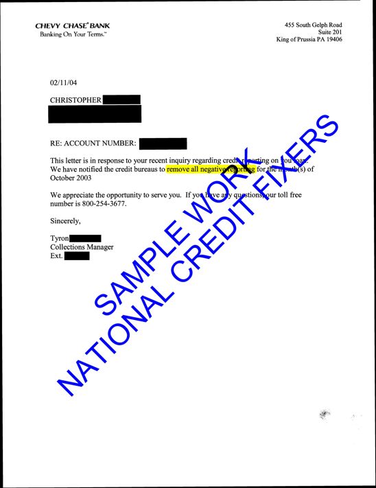 Chevy Chase Bank Deletion